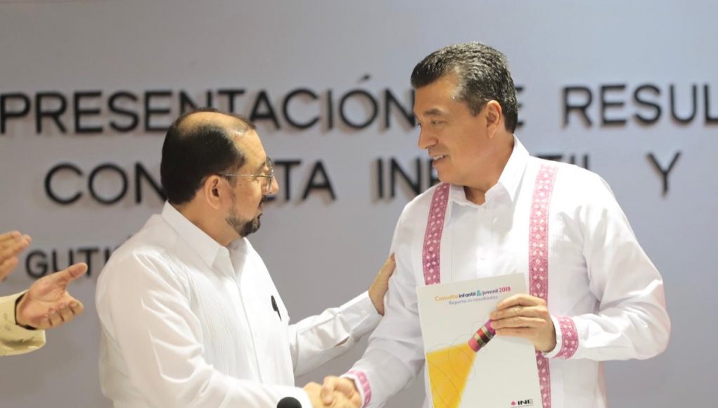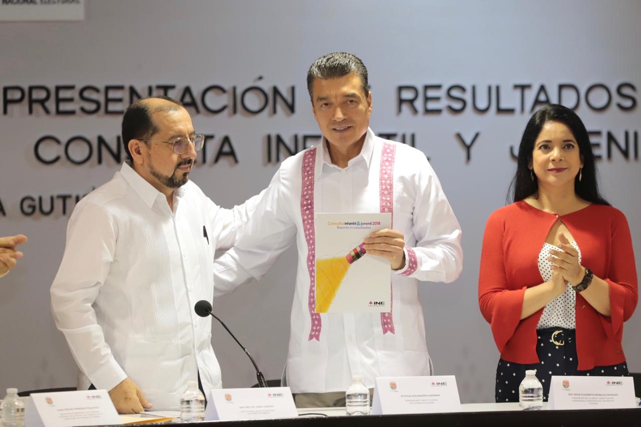 El gobernador presenció la presentación de los resultados de la Consulta Infantil y Juvenil 2018, a cargo del Instituto Nacional Electoral