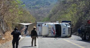 Volcó tráiler rumbo a Arriaga; daños materiales y lesionados
