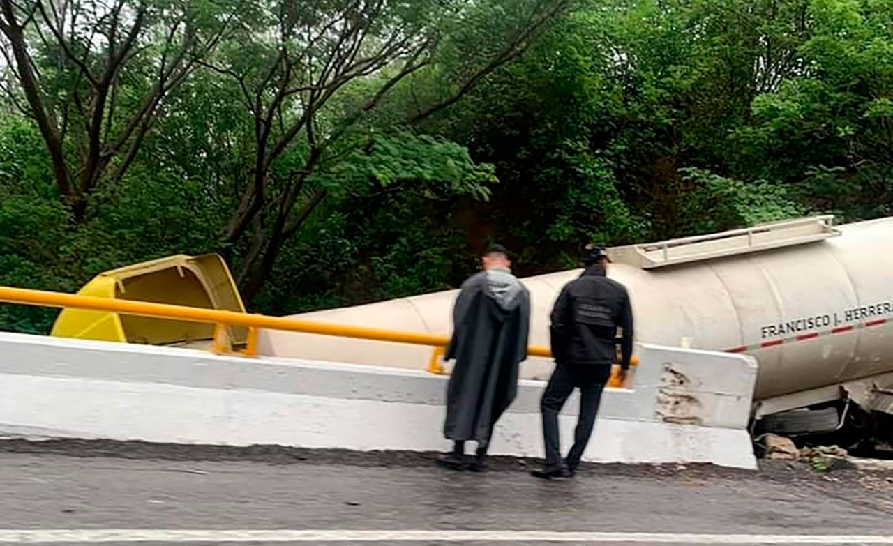 En el lugar el conductor de un tráiler que transportaba una pipa acabo saliendo del camino tras perder el control de su vehículo pesado debido a la intensa lluvia y una posible falta de precaución al manejar.