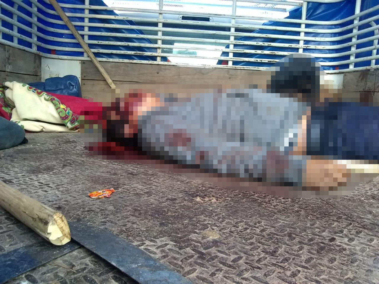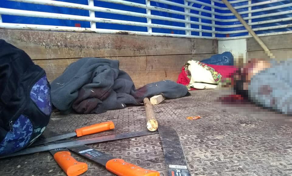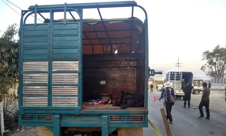 Se trata de un camión de tres toneladas de color blanco con celeste con placas GY61906, otro similar de la marca Ford sin placas, con dos personas sin vida en su interior, y otra unidad marca Chevrolet de color negro con placas DSH5062.