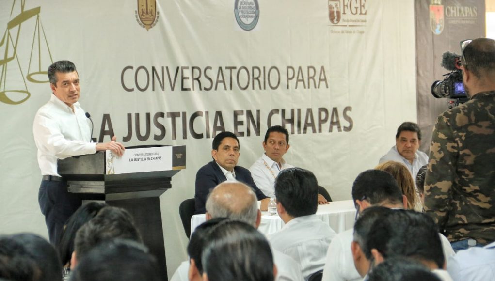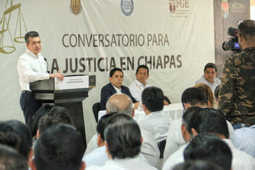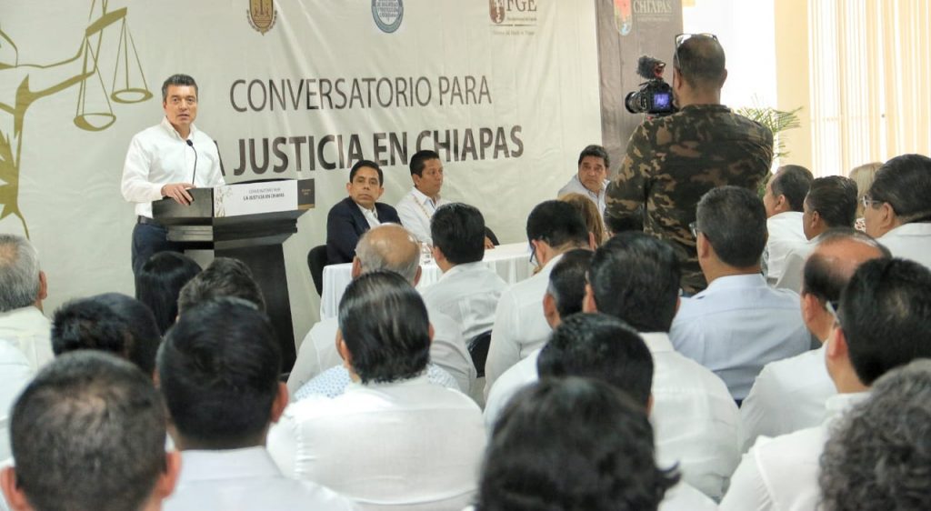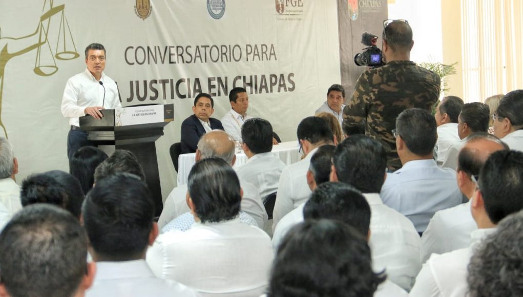 En el marco del Conversatorio para la Justicia en Chiapas, el gobernador Rutilio Escandón Cadenas subrayó la obligación que tienen las y los representantes de las instituciones encargadas de la seguridad y defensa de la ciudadanía, de velar por la justicia que clama la sociedad.