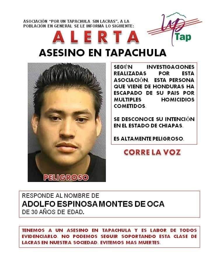 Luego de que se diera a conocer el caso del sujeto que mató a balazos a un comerciantes y dos policías en Tapachula, comenzó a circular en redes sociales una supuesta foto del atacante, emitida por una asociación llamada “por un Tapachula Sin Lacra”.