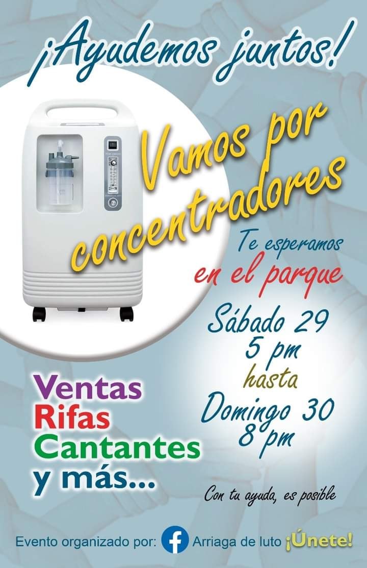 Por medio de las redes el activista pro-derechos humanos Luis Arvey Cruz hizo una invitación a los arriaguenses para asistir los días sábado 29 y domingo 30 de mayo del año en curso a la explanada del parque central de esta cabecera municipal, en donde, a través de la organización “Ayudemos Juntos” se harían diversas actividades con el objetivo de recaudar recursos para la compra de generadores de oxígeno.