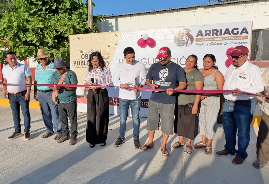 Arriaga.- La presidenta municipal de Arriaga, Yolanda Alonso de los Santos, inauguró la tarde de este jueves, una obra de pavimentación en la Pesquería “La Gloria”, con una inversión de $3,500,000 pesos del Fondo de Infraestructura Social Municipal.