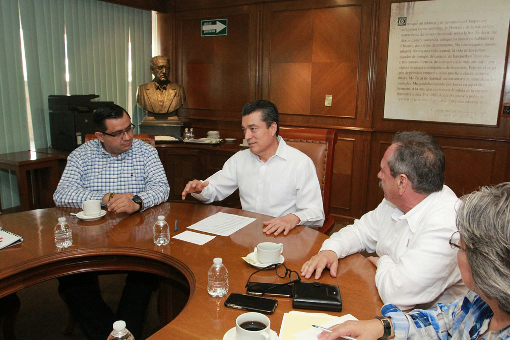 Ante el delegado federal de Programas Integrales de Desarrollo en Chiapas, José Antonio Aguilar Castillejos, el gobernador reconoció el respaldo que brinda al estado el presidente de México, Andrés Manuel López Obrador, quien está interesado y ocupado en mejorar las condiciones del campo, la producción agropecuaria, el abasto de alimentos y los precios de garantía para productos básicos.