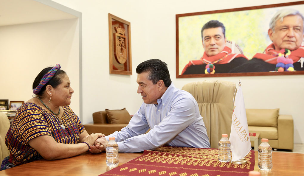 Por su parte, Menchú Tum destacó a los gobiernos del presidente Andrés Manuel López Obrador y del gobernador Rutilio Escandón Cadenas por impulsar la conciliación como el instrumento idóneo para la resolución de diversos conflictos que persistieron durante muchos años, especialmente en algunas zonas indígenas, y que anteriormente nadie tuvo la voluntad de resolver.