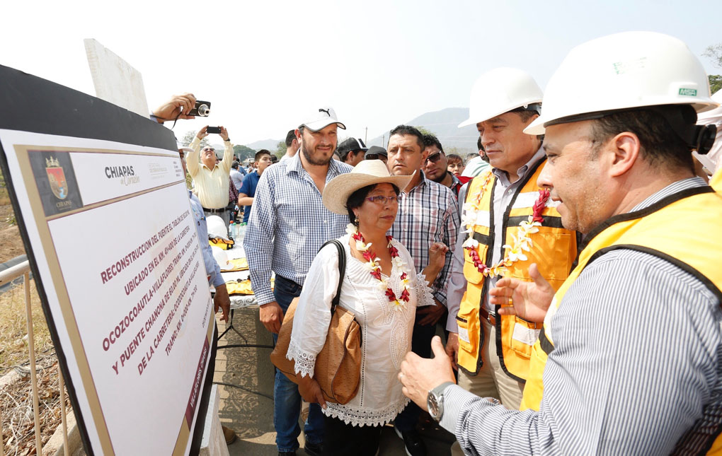 El gobernador Rutilio Escandón Cadenas encabezó el banderazo de inicio a los trabajos para la modernización de los puentes Tablón y Chanona, sobre la carretera Ocozocoautla-Villaflores, obras en las que se invertirán más de 68 millones de pesos, y fortalecerán la seguridad y economía de comunidades y municipios.