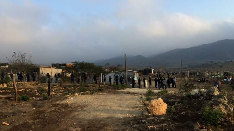 Tuxtla Gutiérrez, Chiapas.- Fuerzas de seguridad coordinadas por la Fiscalía General del Estado (FGE) cumplimentaron esta mañana una orden judicial de desalojo en el predio de 44 hectáreas denominado Magaly, ubicado en el municipio de Berriozábal, el cual permanecía ocupado de manera ilícita por un grupo aproximado de 200 personas desde 2017, informó en conferencia de prensa el fiscal general Jorge Luis Llaven Abarca.