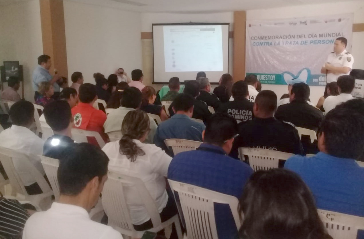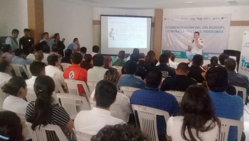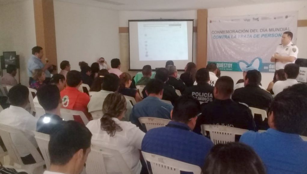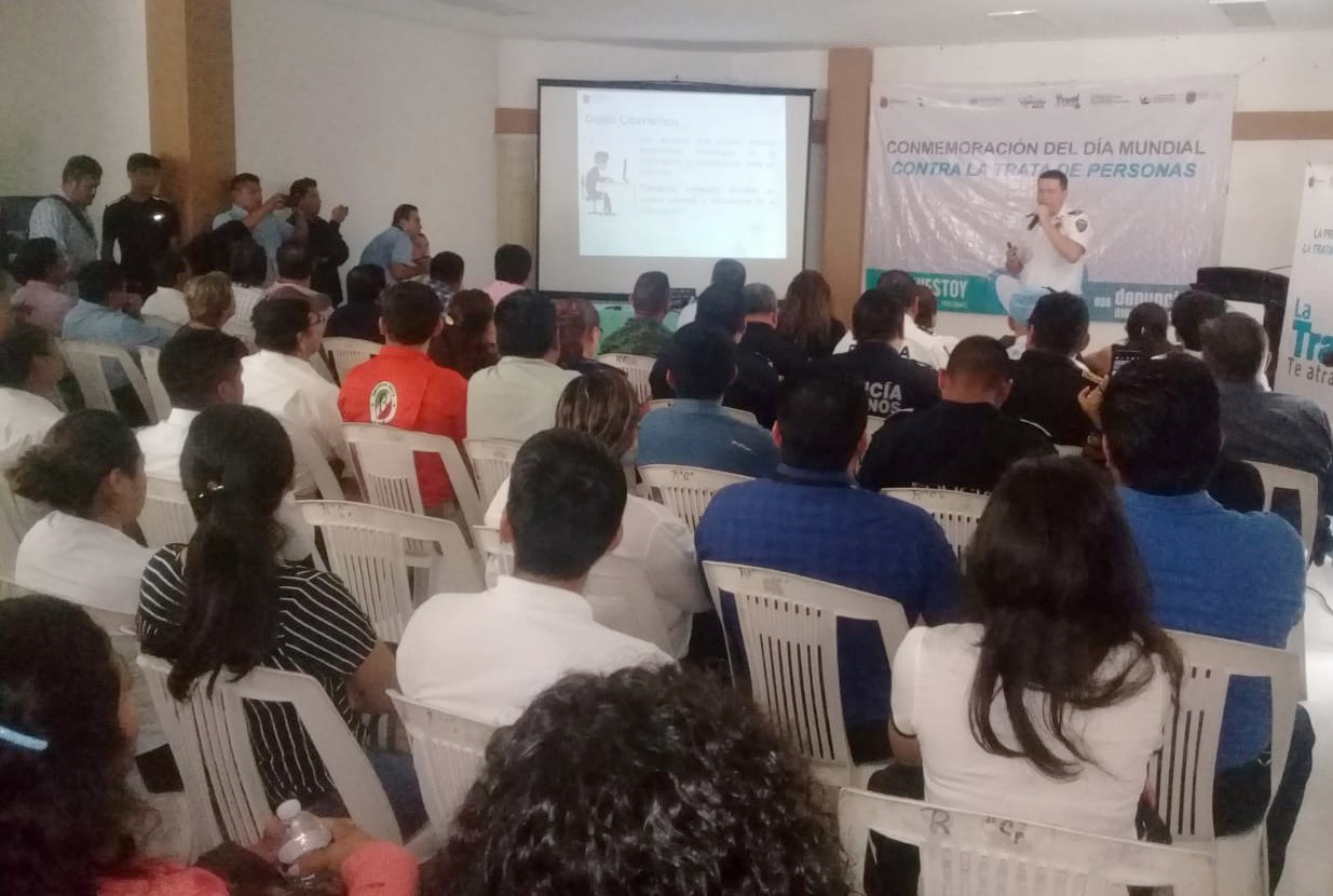 De manera simultánea, esta temática se disertó en las instalaciones de la Unión Ganadera Regional en la ciudad de Palenque. Se abordaron ejemplos de cómo los tratantes usan medios electrónicos y redes sociales para captar, ofertar y negociar trata de personas y cómo los niños, niñas y adolescentes son los más propensos a ser víctimas, y qué tan importante es concientizar sobre esta conducta a padres y generar las denuncias correspondientes.
