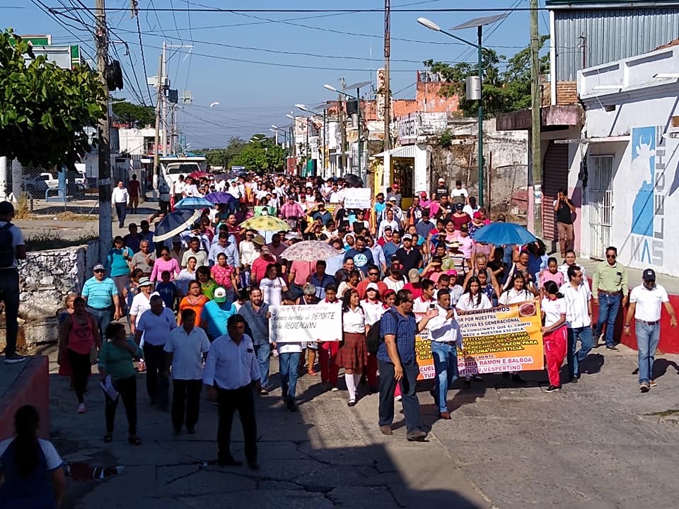 Tonalá, Chiapas.- Cientos de padres de familia, docentes y alumnado de distintos centros escolares marcharon el día de ayer, martes 03 de diciembre de 2019 desde la Escuela Secundaria “Ramón E. Balboa” hasta el centro de la ciudad, exigiendo a las autoridades municipales, locales y federales su pronta intervención para evitar la venta del campo de fútbol de esta escuela, la cual por más de 50 años le ha pertenecido.