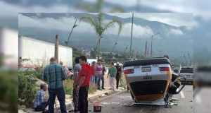 Aparatosa volcadura de taxi en Tuxtla Gutiérrez