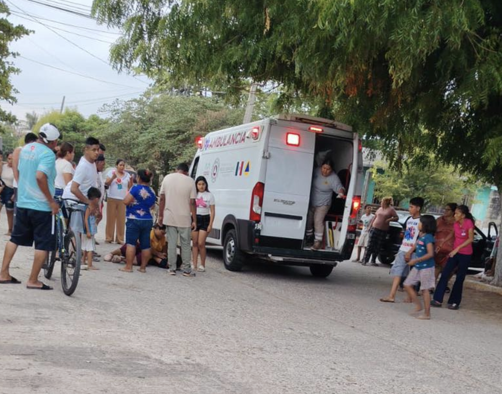 Arriaga, Chiapas.– Un accidente vial fue reportado en la 14 Sur de este municipio, donde un motociclista pasó a traer a una mujer, lo que generó la movilización de cuerpos de emergencia.